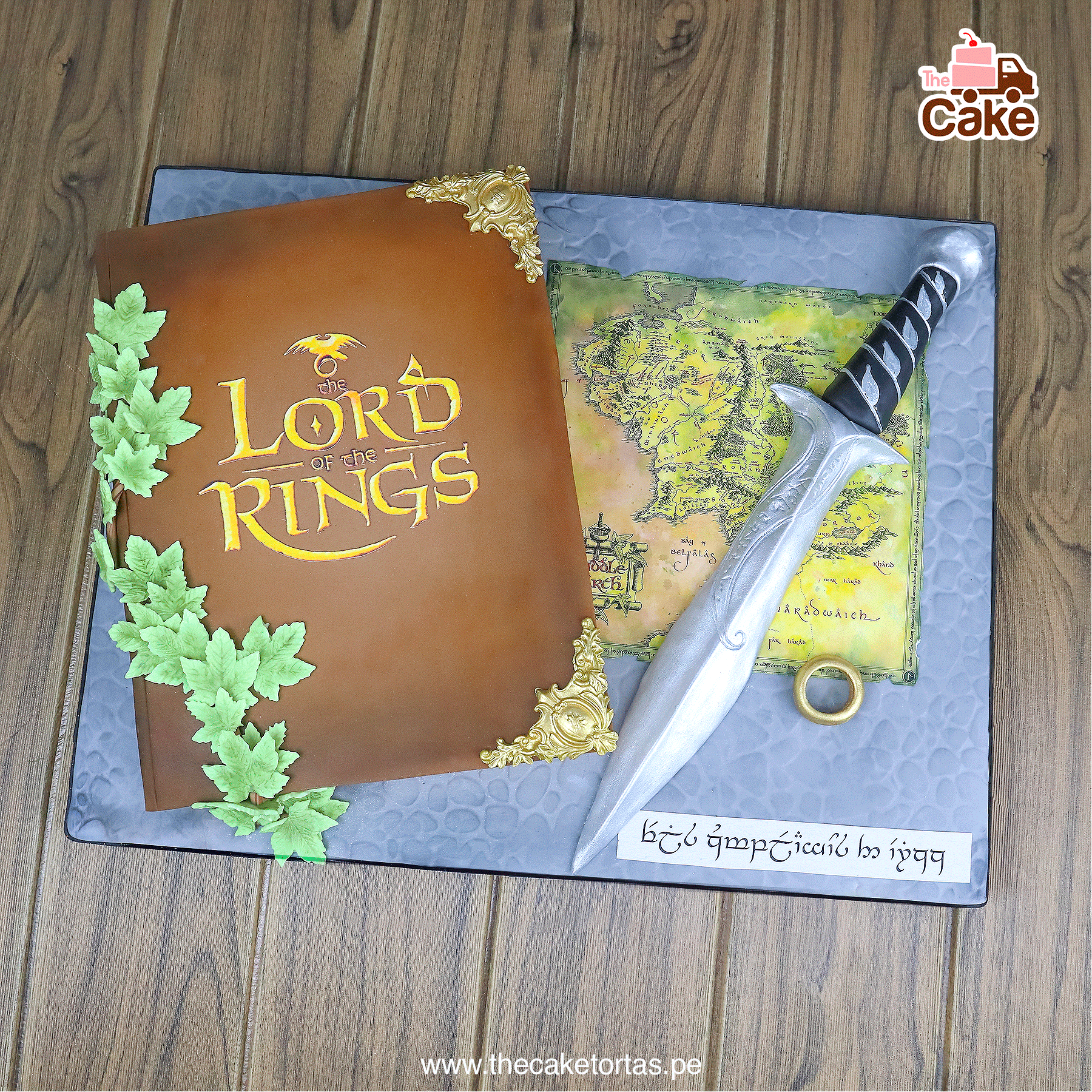 espada en azúcar y dedicatoria personalizada en idioma élfico