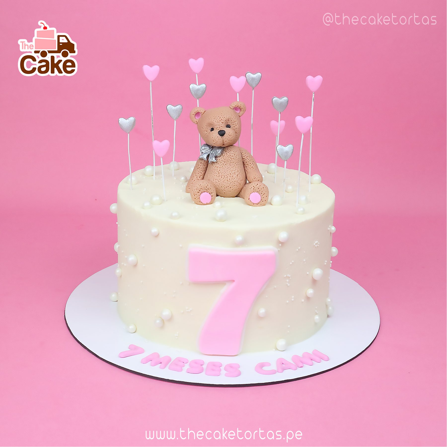 Con personaje osito modelado en azúcar y detalles comestibles.